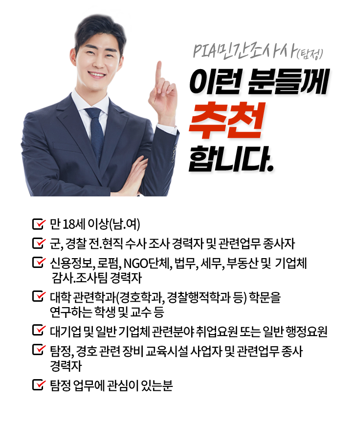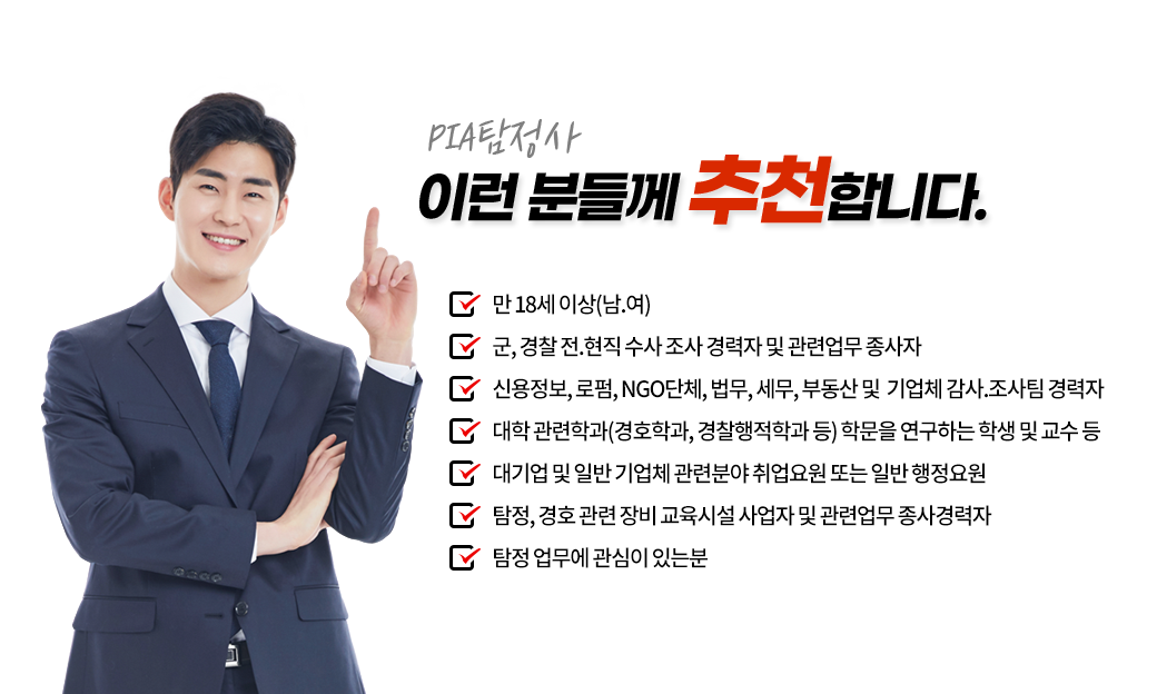 ŽÁ¤ÀÚ°ÝÁõµµ Á¾·ù°¡ ¿©·¯ °¡Áö ÀÔ´Ï´Ù. PIA»ç¼³Å½Á¤»ç´Â ±¹³» ÃÖÃÊ °æÂûû, Á÷´É¿ø Àڰݱ⺻¹ý¿¡ ÀǰÅ, ½Ç½ÃÇϴ ŽÁ¤Àü¹® ÀÚ°ÝÀÔ´Ï´Ù.